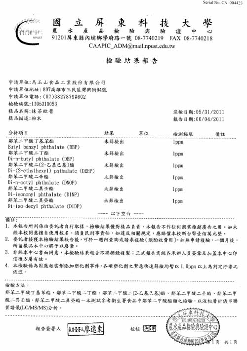 不含塑化劑,檢驗合格