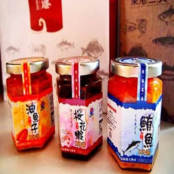 商品名稱:《東港華得》xo醬料禮盒(油魚子xo醬+櫻花蝦xo醬+鮪魚xo醬)