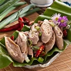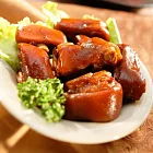 以一整隻豬腳搭配家傳獨特滷汁熬製後再以高溫蒸煮加上特殊醬汁調製而成